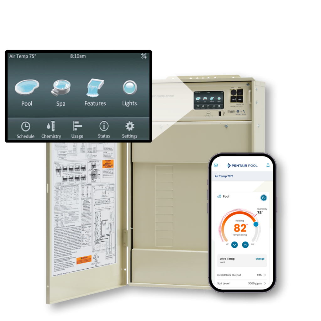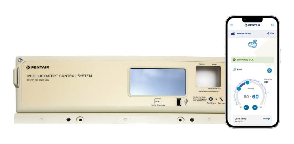 The IntelliCenter Control System for Pool and Spa is the latest automation innovation from Pentair. Wherever you are, the IntelliCenter makes it easier and more intuitive than ever to control your pool. Easily and intuitively manage the features of your pool and/or spa from anywhere in the world with IntelliCenter’s remote access and built-in connectivity for the ultimate in convenient control.