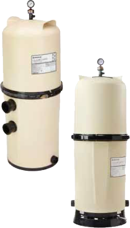Clean & Clear Plus Cartridge Pool Filters have a corrosion-resistant, injection-molded, fiberglass-reinforced, polypropylene filter tank featuring superior strength and reliability. The cartridge assembly uses four, nonwoven, polyester cartridges. There is no need for backwashing.